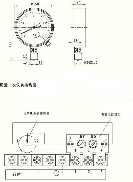 YTZ-150 | Φ150 | M20x1.5 | 與一般壓力表相同 | 溫度-40—70℃;相對(duì)濕度≤85﹪ |