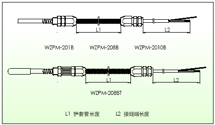 2)鎧裝 pt100鉑熱電阻型號WZPK系列